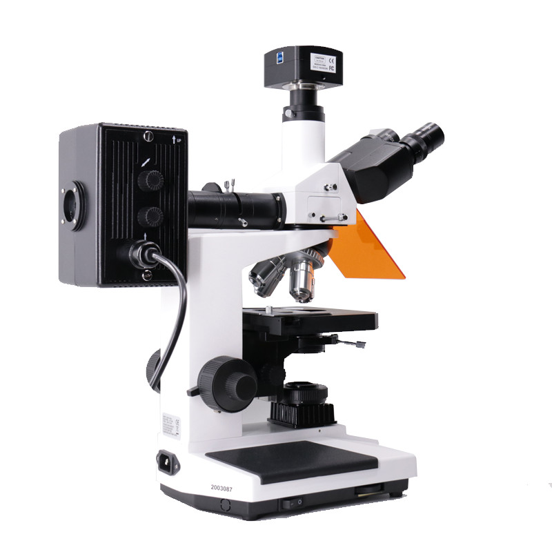▲ 透射照明采用6V 20W卤素灯,亮度可调;荧光落射照明采用100W高压汞灯,外置电源箱.
